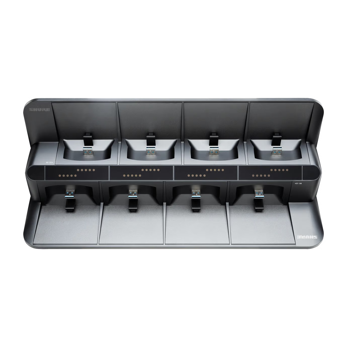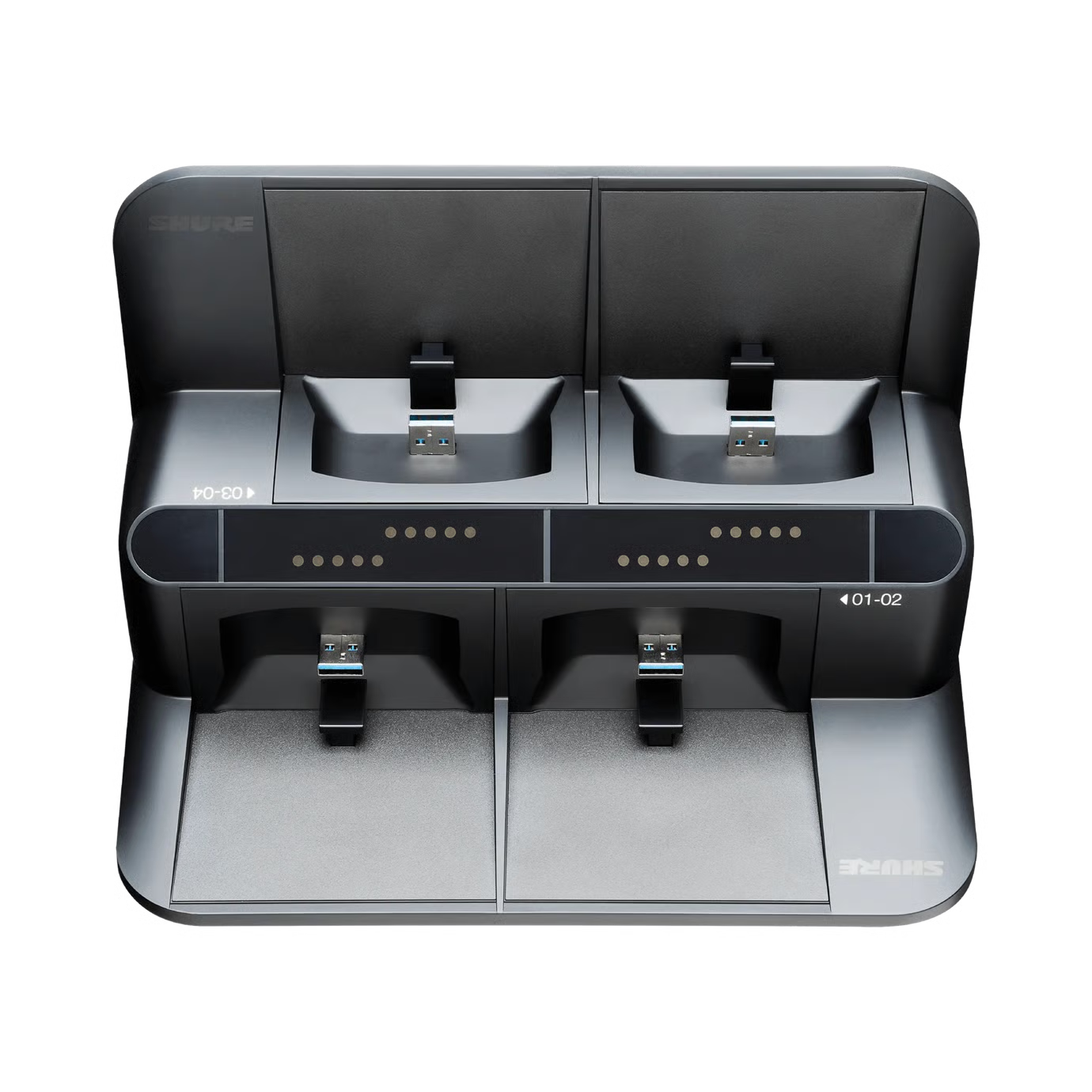 Estación de carga en red de 4 puertos para cargar hasta 4 transmisores ULXD6 o ULXD8 equipados con la batería...