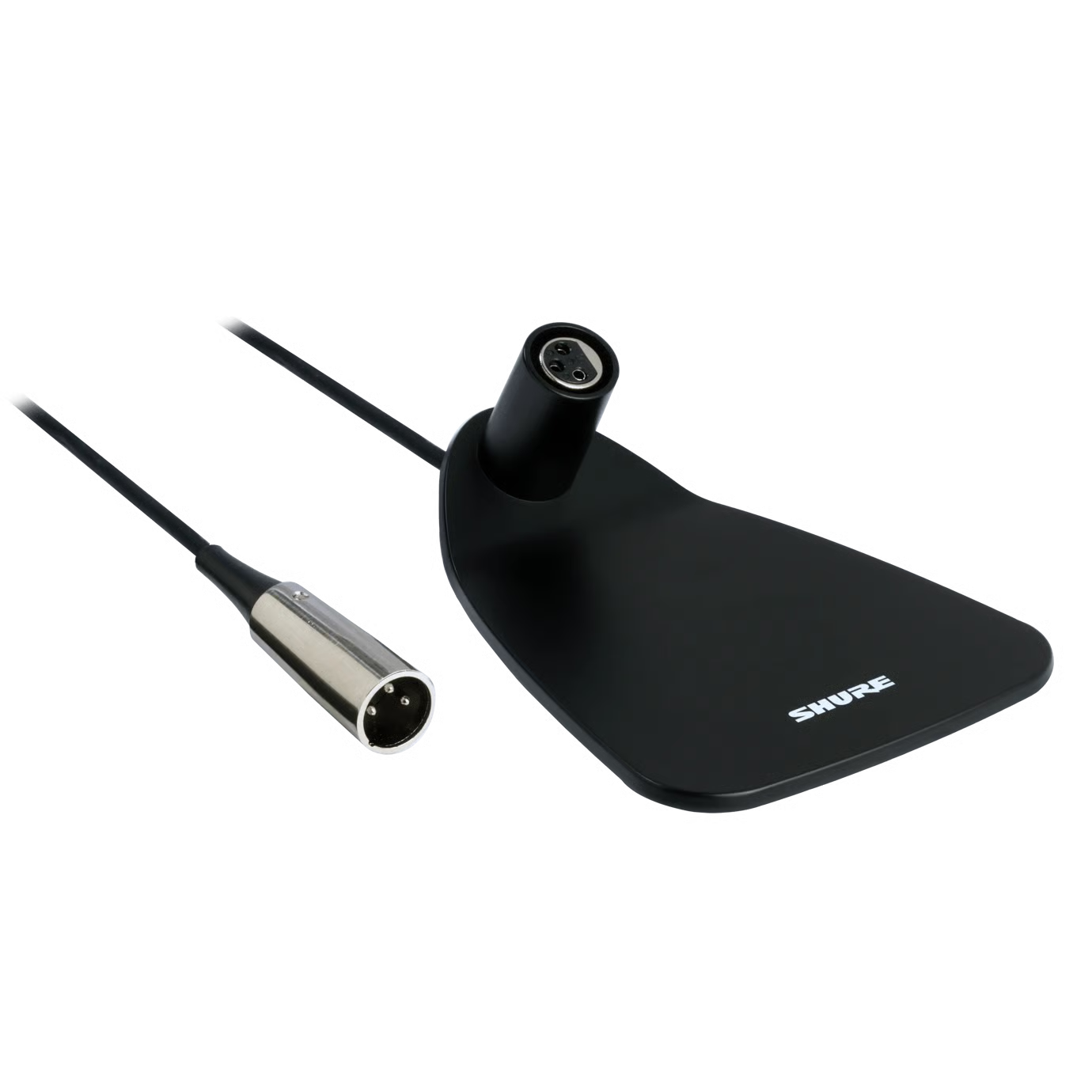 Soporte de montaje en superficie que facilita el montaje del micrófono sobre una superficie, como un podio o un escritorio....