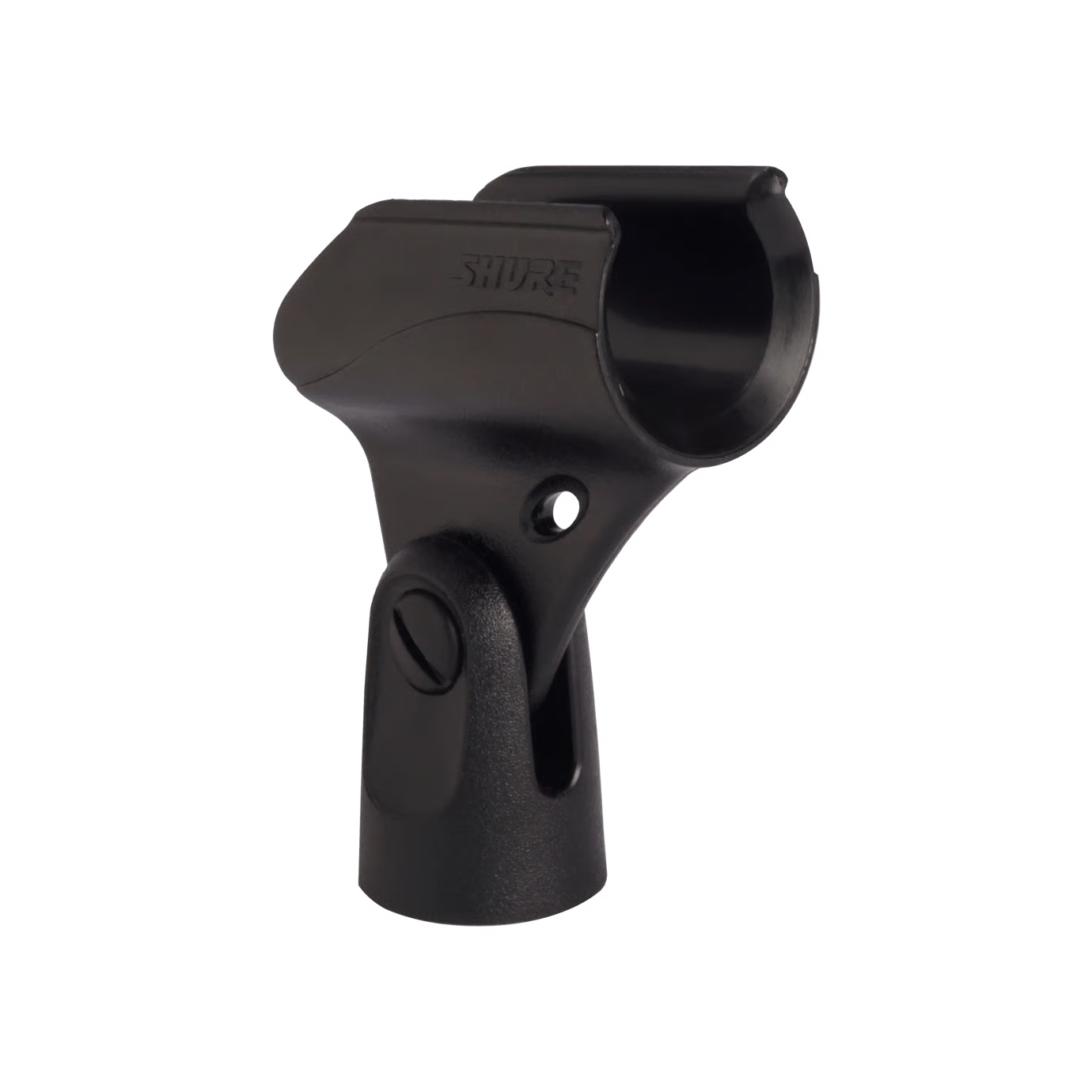 Pinza para montar micrófonos con un mango de 19 mm o mayor diámetro en soportes de micrófono estándar.