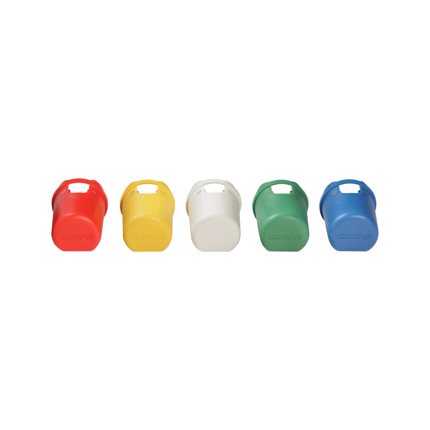 Tapas identificadores de color para los transmisores de mano Axient® Digital.