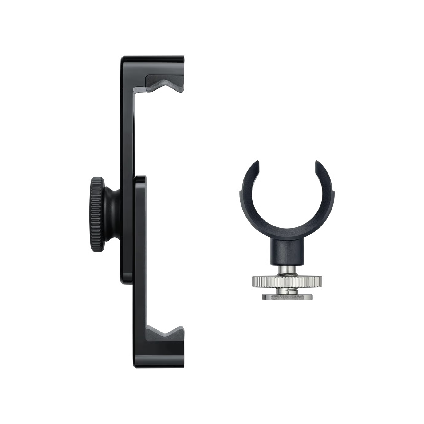 Pinza de micrófono y abrazadera para teléfono de repuesto para tu kit de video MV88+. Ambos accesorios están incluidos.