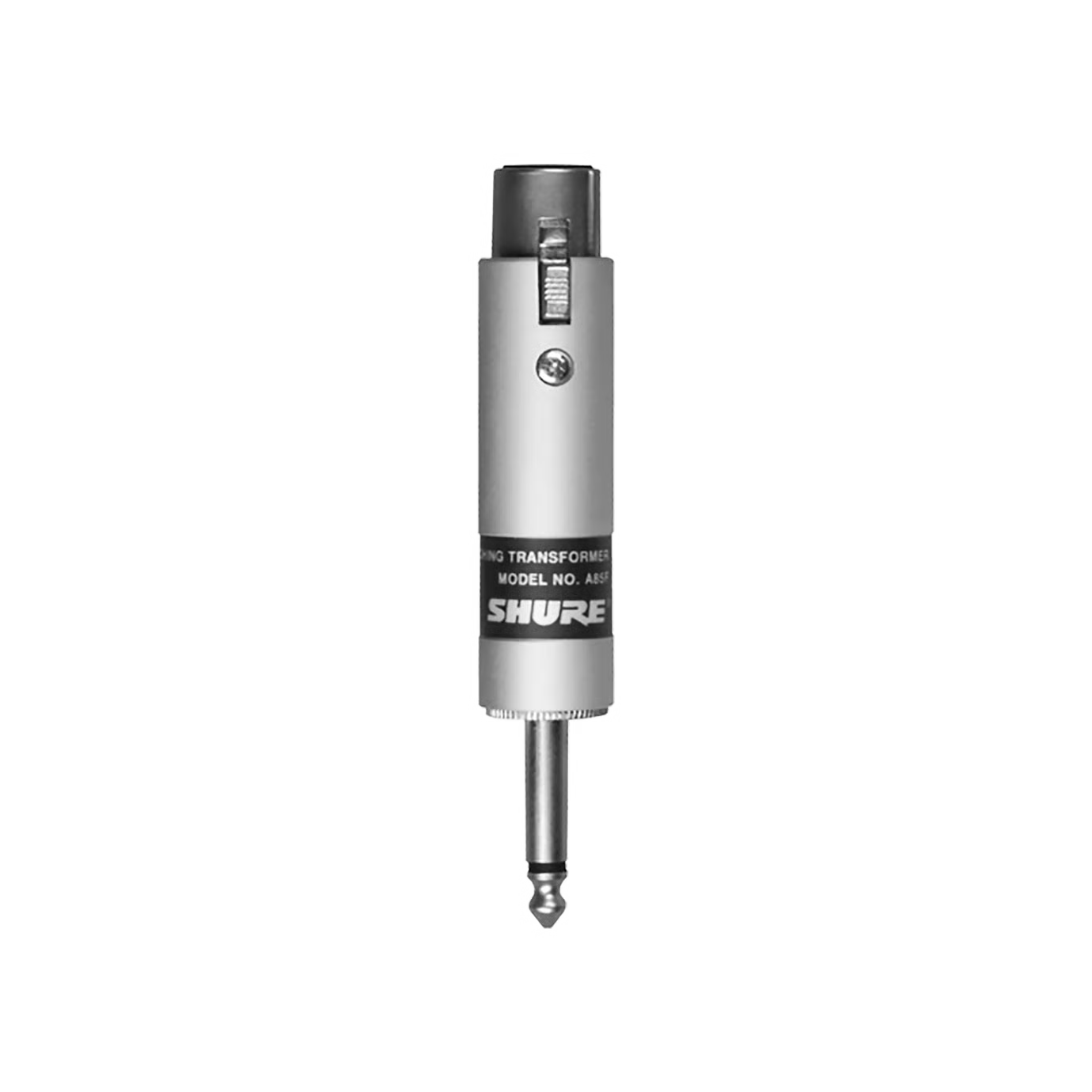 El A85F de Shure es un transformador de adaptación para micrófonos de baja a alta impedancia que se utiliza para conectar una salida de micrófono de baja impedancia balanceada a la entrada de alta impedancia no balanceada de un mezclador o grabador.