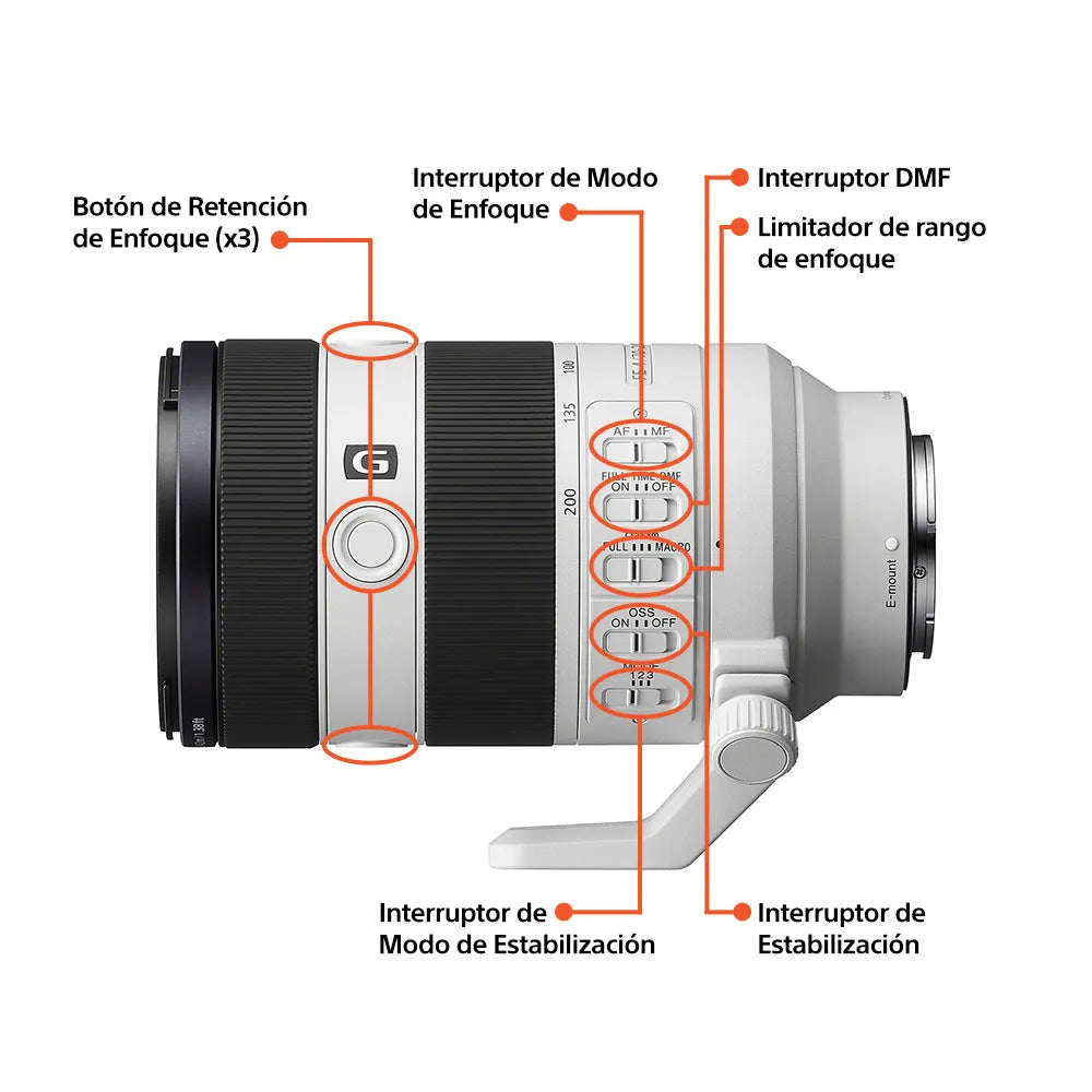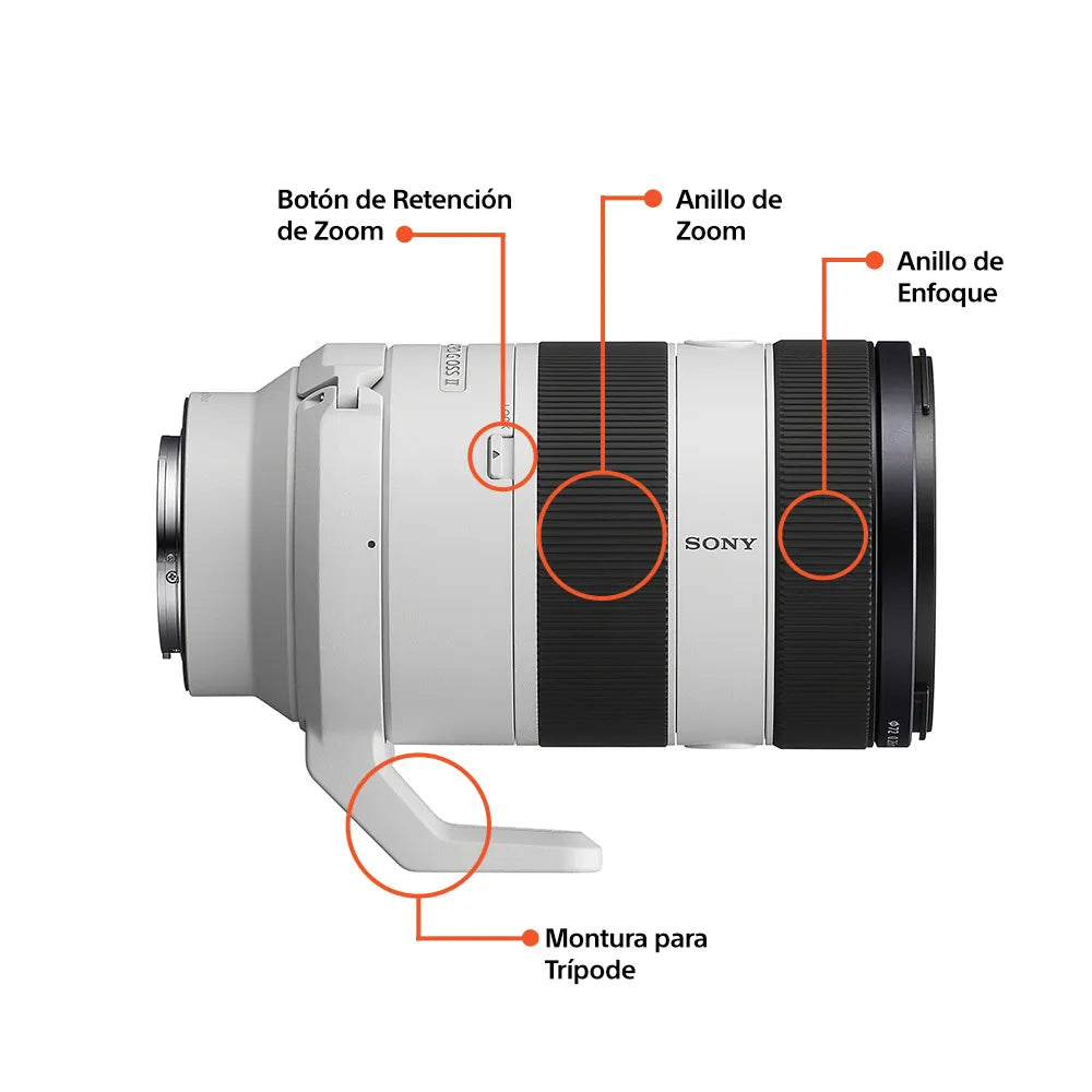 El enfoque automático es rápido y preciso gracias a los cuatro motores lineales XD de alta potencia que trabajan en conjunto con los grupos de enfoque flotante. Esto garantiza una velocidad de enfoque impresionante y un seguimiento continuo incluso al utilizar el zoom. El lente también es compatible con teleobjetivos de 2.0x y 1.4x de Sony, lo que amplía aún más las opciones creativas.