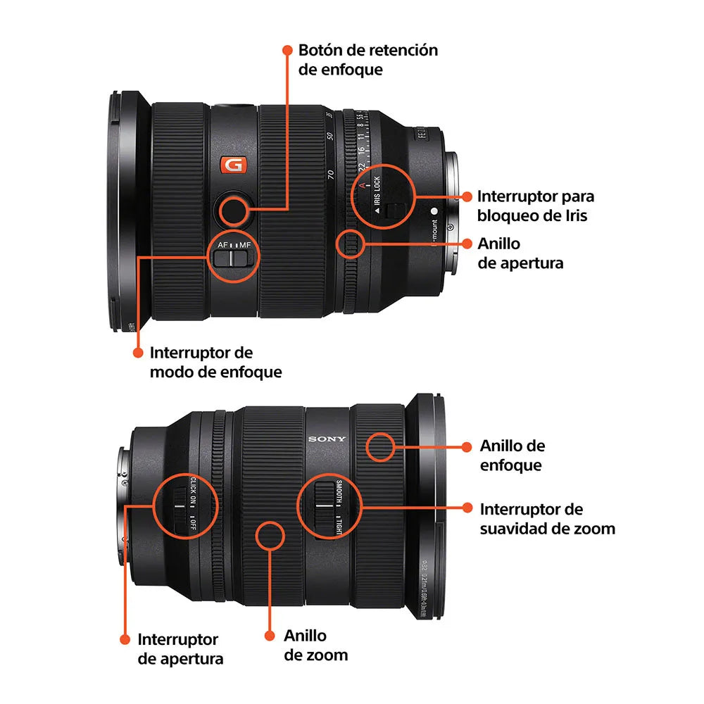 El lente Sony FE 24-70mm de Sony, está diseñado para satisfacer las demandas de los fotógrafos profesionales, lo cual lo hacen un objetivo versátil e ideal para una amplia gama de aplicaciones, desde retratos hasta fotografía de paisaje y eventos.