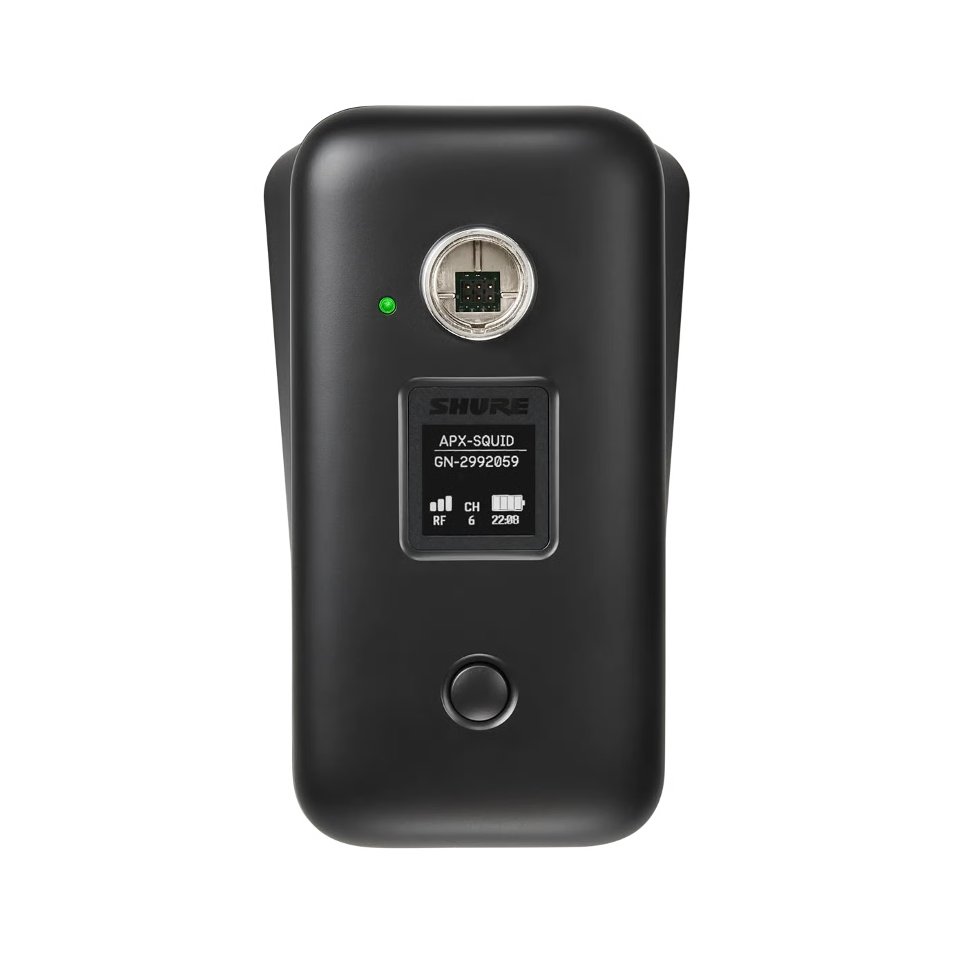 • Pantalla de matriz de alta resolución: proporciona información precisa sobre el tiempo de funcionamiento, como el tiempo restante de la batería, el tiempo restante hasta la carga completa, la calidad de la conexión de RF, alertas del sistema, como acercarse al rango de RF, pero también detalles de componentes editables por el usuario, como el nombre del micrófono y el nombre del punto de acceso al que está vinculado el micrófono.