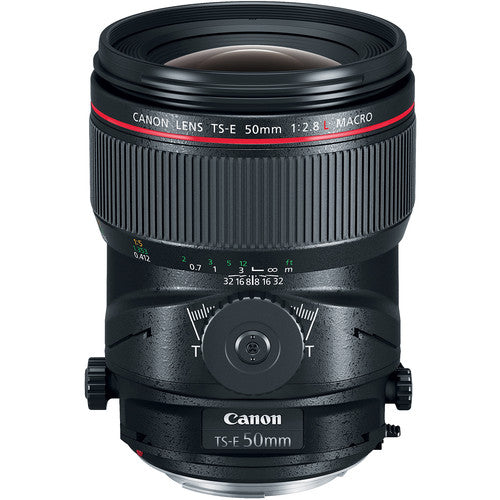 Caracterizado por su enfoque cercano y su capacidad de control de perspectiva, el TS-E 50 mm f/2.8L Macro de Canon es un objetivo de longitud normal con desplazamiento de inclinación, ideal para fotografía de productos, de sobremesa, arquitectónica e interiores. Permite una inclinación de hasta +/- 8,5° para controlar el enfoque y un desplazamiento de +/- 12 mm para ajustar la perspectiva y la composición. Además, se puede usar un mecanismo de bloqueo de inclinación durante la toma para mayor estabilidad. Su distancia mínima de enfoque de 27,6 cm y su aumento máximo de 0,5x también se benefician de su amplio rango de movimientos, lo que permite un mayor control de la profundidad de campo al fotografiar sujetos en primer plano.