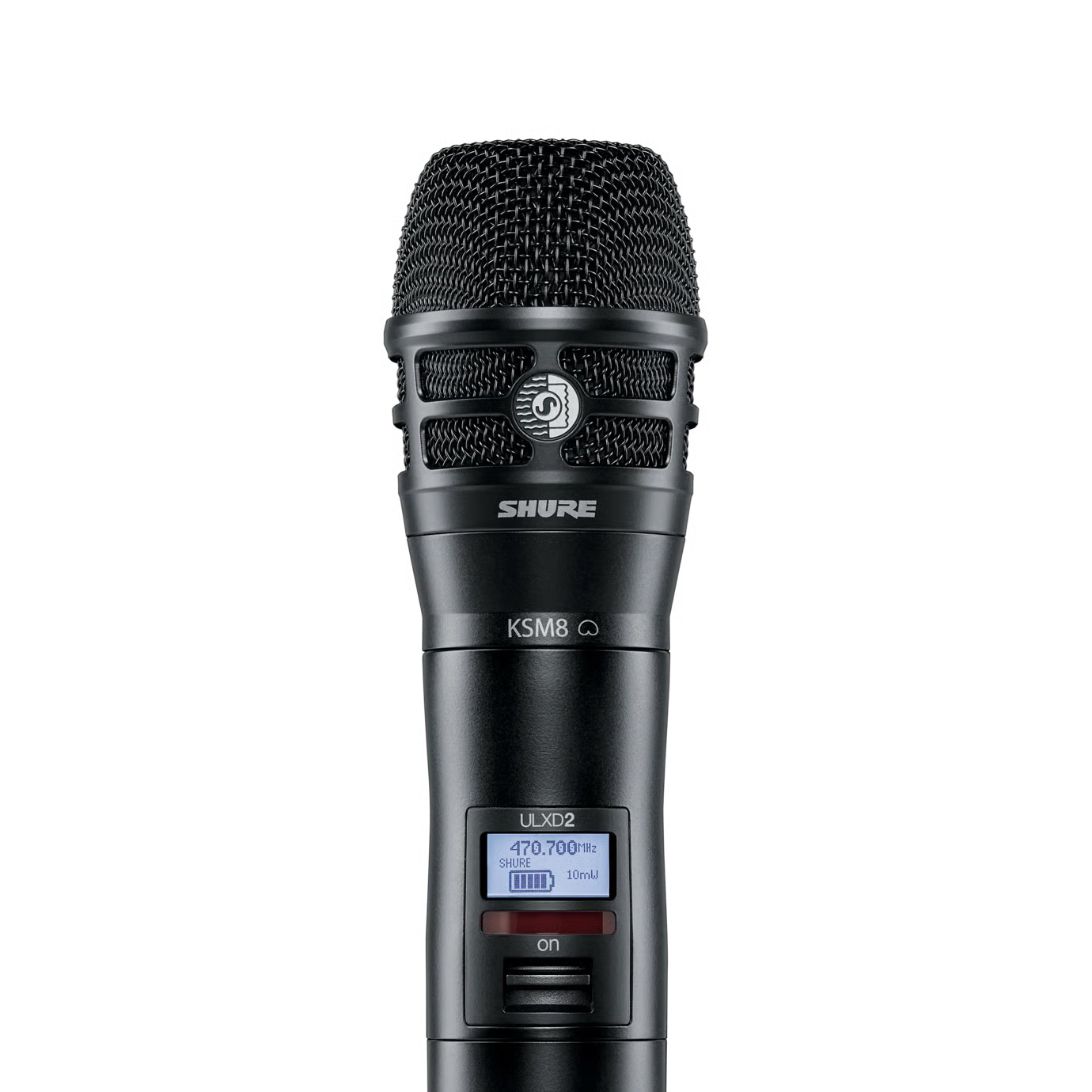 El transmisor de mano ULXD2, acoplado con el destacado micrófono vocal KSM8, es la opción perfecta para exigentes interpretaciones en directo en todo el mundo.