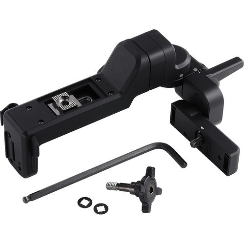 La unidad de montaje para pantalla LCD Canon LA-V2 es un soporte de tres bisagras que fija la pantalla LCD LM-V2 opcional a la C500 Mark II. Ofrece tres puntos de articulación para colocar la LM-V2 como mejor le parezca al disparar.